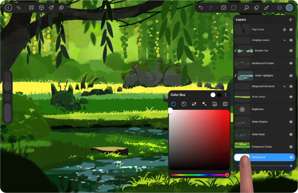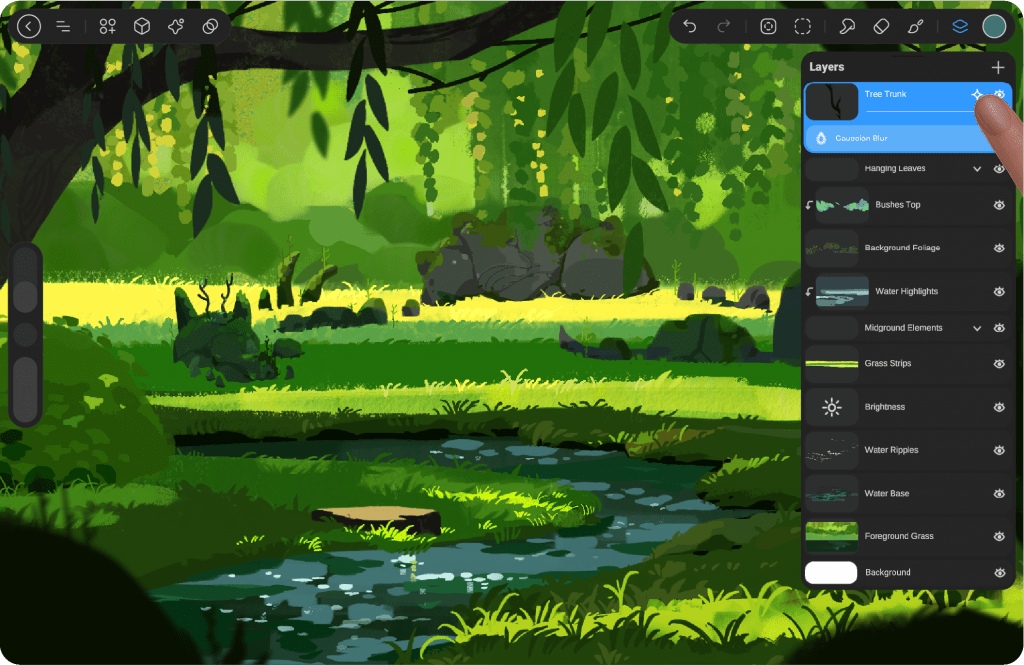 To ensure your artwork stays organized, changes are applied only to the selected layer, which is clearly highlighted in blue. Simply tap on a different layer to begin editing it, and all adjustments will be made on that layer.