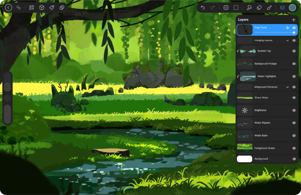 The Layer Opacity Slider allows you to control the transparency of your selected layer. By adjusting the slider, you can make the layer more transparent or more opaque, giving you the flexibility to create subtle effects, blend layers, or achieve a specific visual look in your artwork. Simply drag the slider left to decrease opacity or right to increase it.