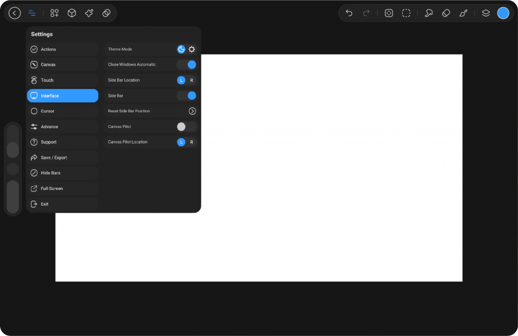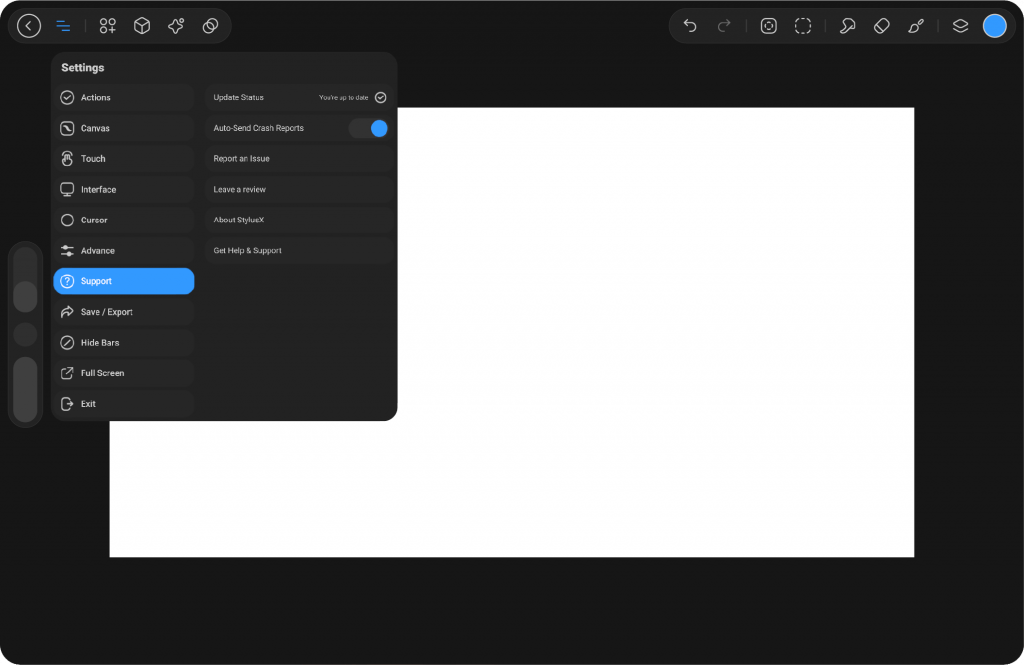 The Settings menu in StylusX provides full control over the application’s behavior and interface, allowing you to customize the workspace to match your workflow. It is designed with a structured, intuitive layout, ensuring that every setting is easily accessible and adjustable.