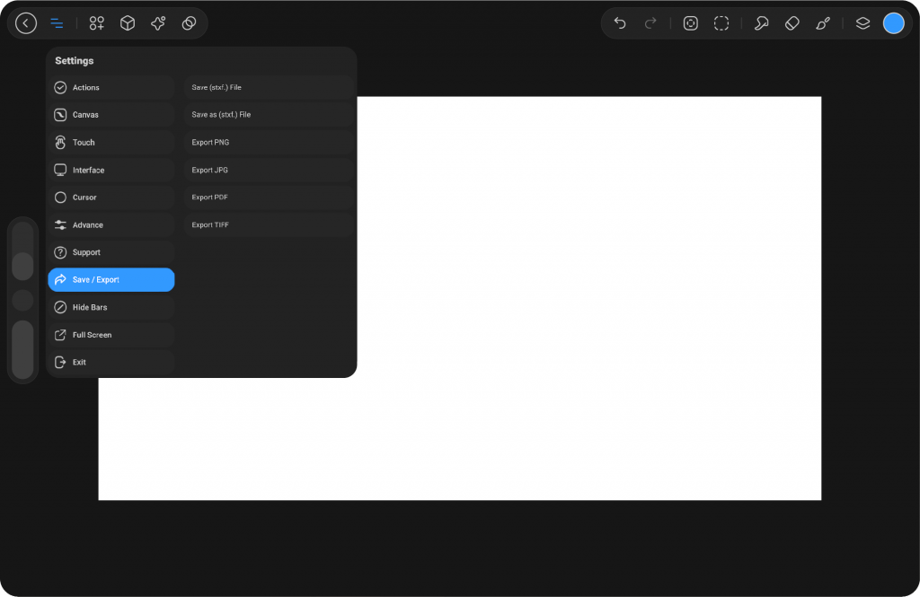 Save (stxf) – Save your project in StylusX’s native format with full layer data.